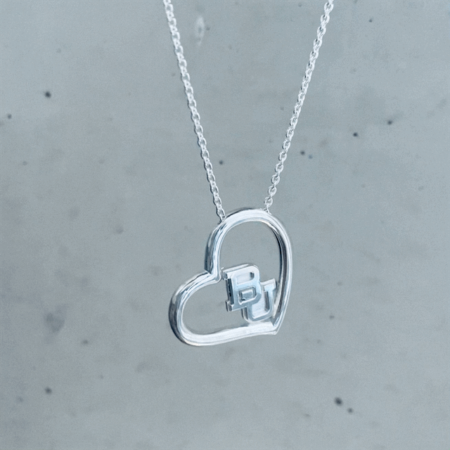 Fandom is finally fabulous, when you wear your Baylor pride on your neck with this elegant heart pendant.