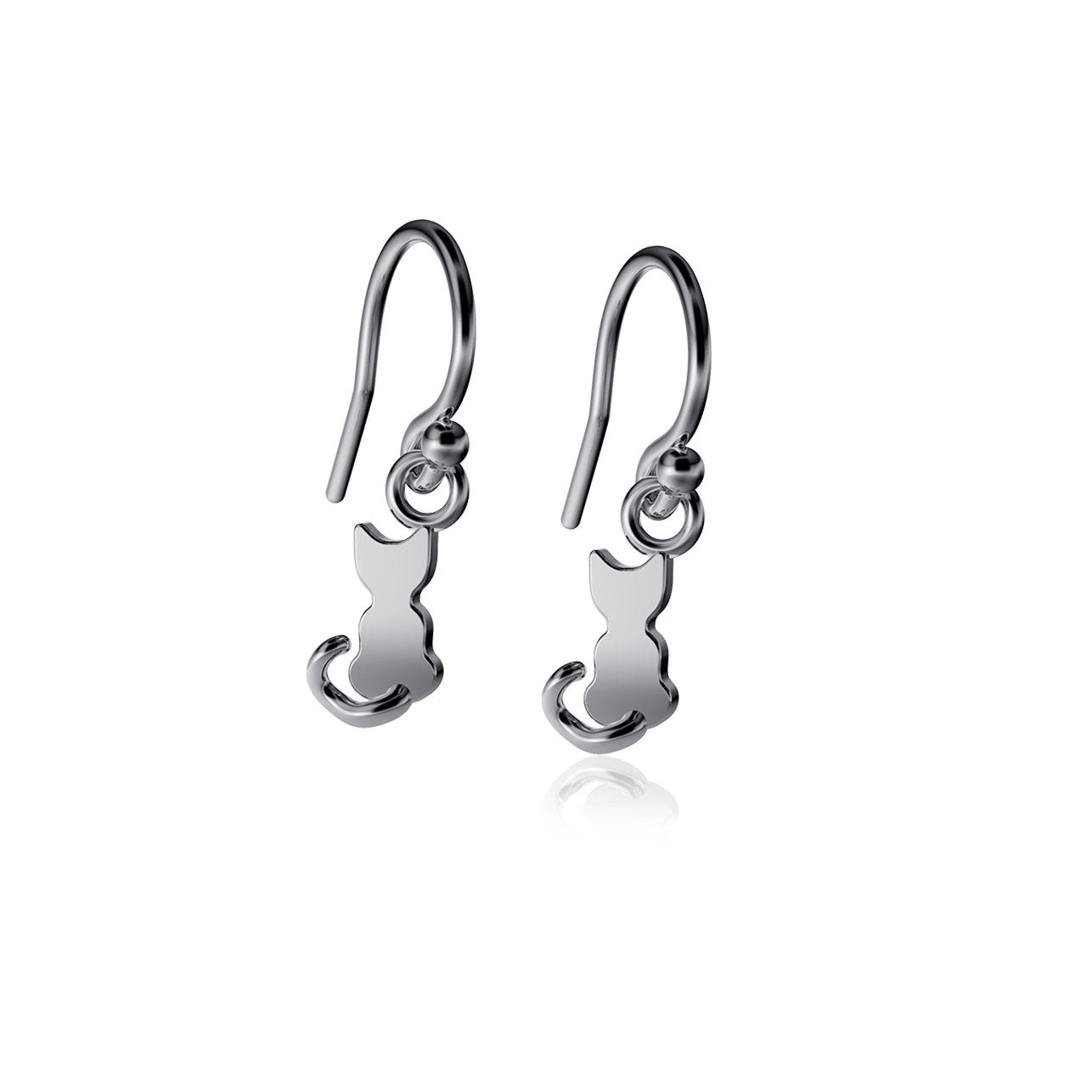 Cat Dangle Earrings - Silver