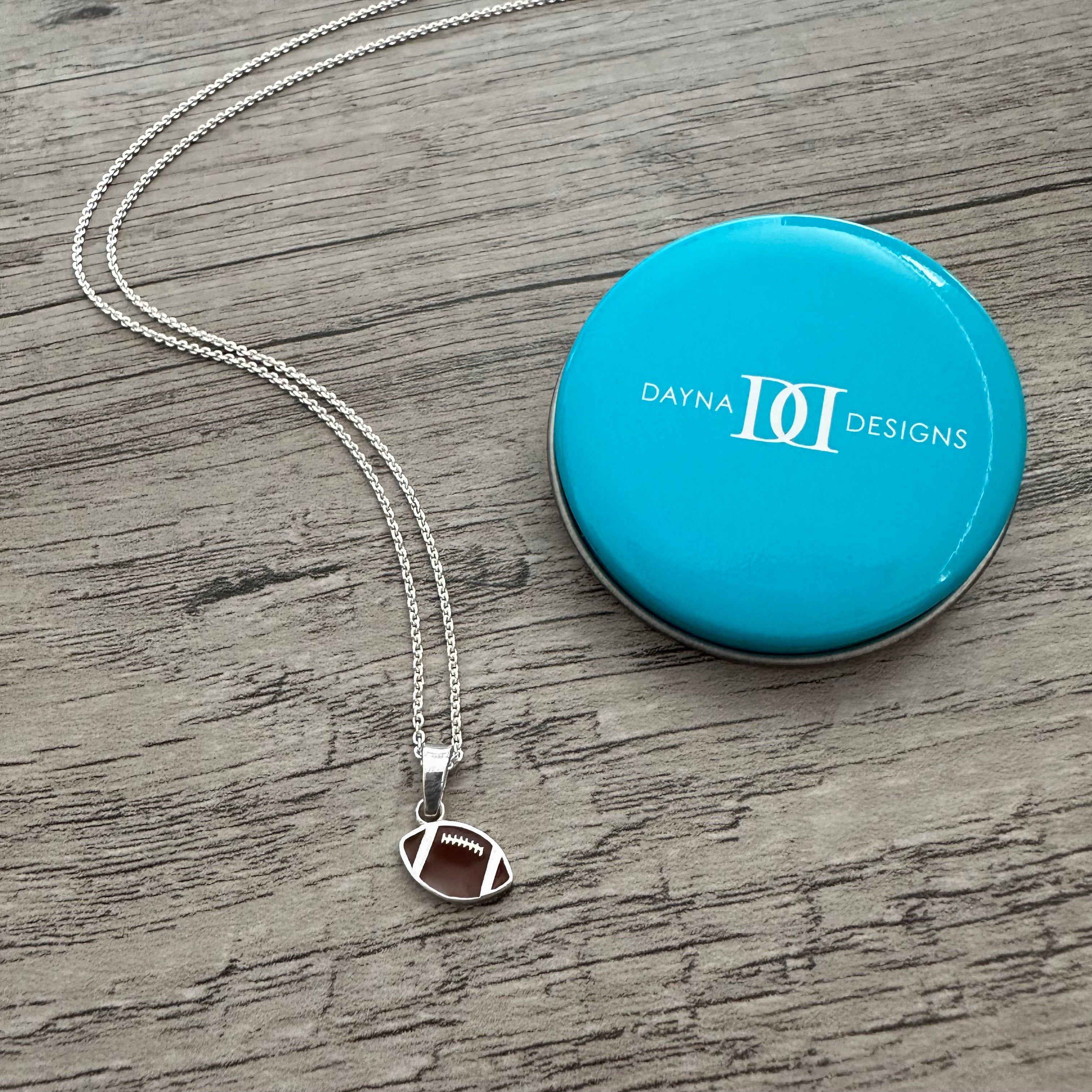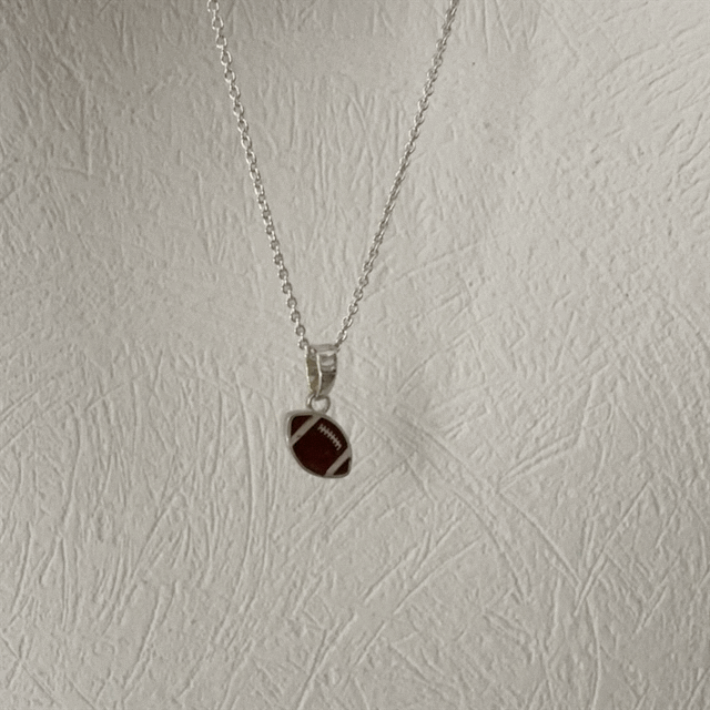 Tailgating, tackles, and touchdowns.  If football is your game, wear this football necklace on game day and every day!