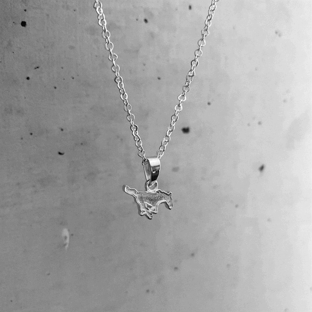 Perfect for game day and every day, this silver silhouette Mustang pendant necklace is just right for every Southern Methodist fan.