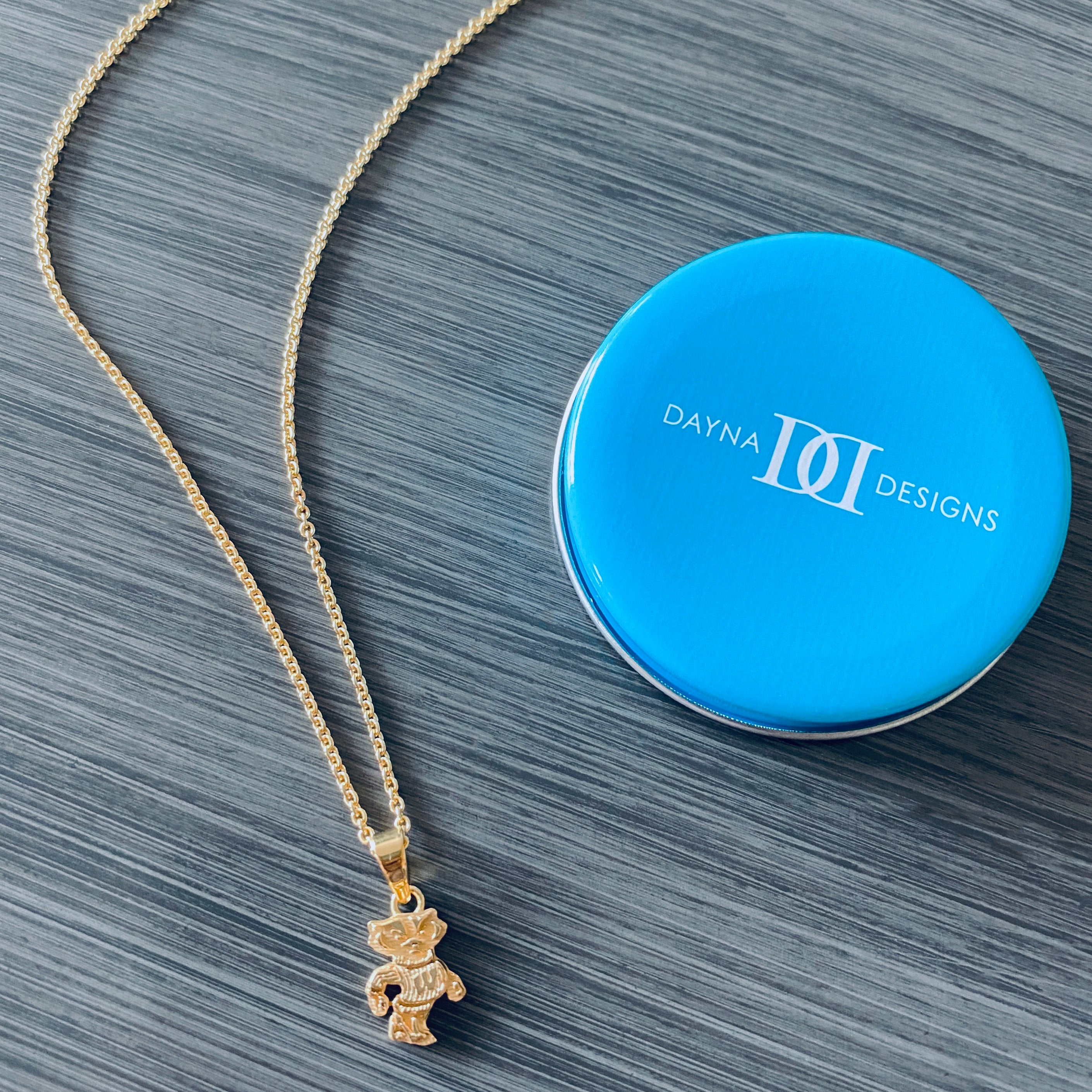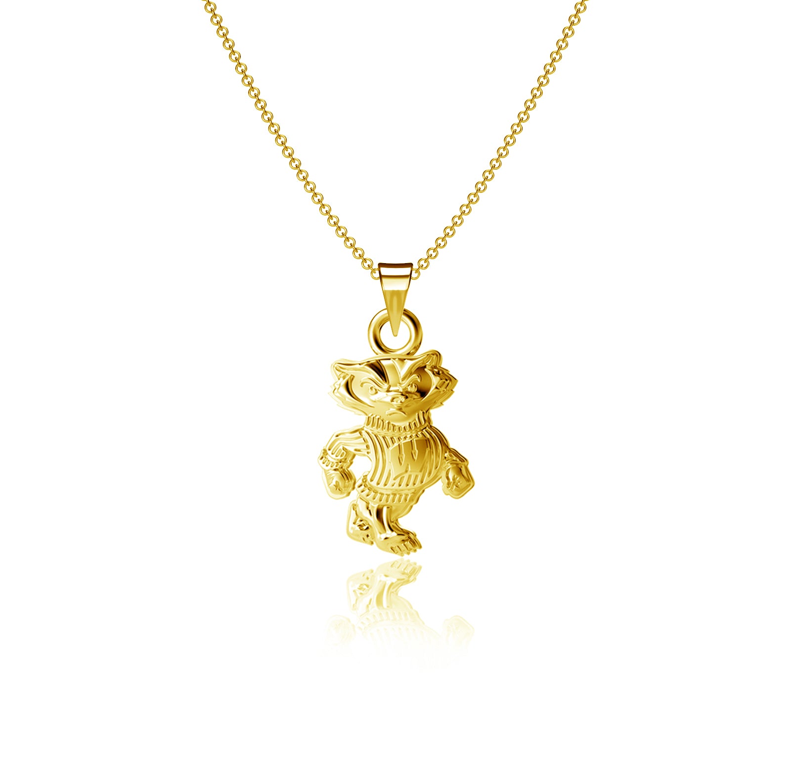 Show off your true Badgers pride with this silhouette Wisconsin pendant, solid silver and plated in 24k gold!